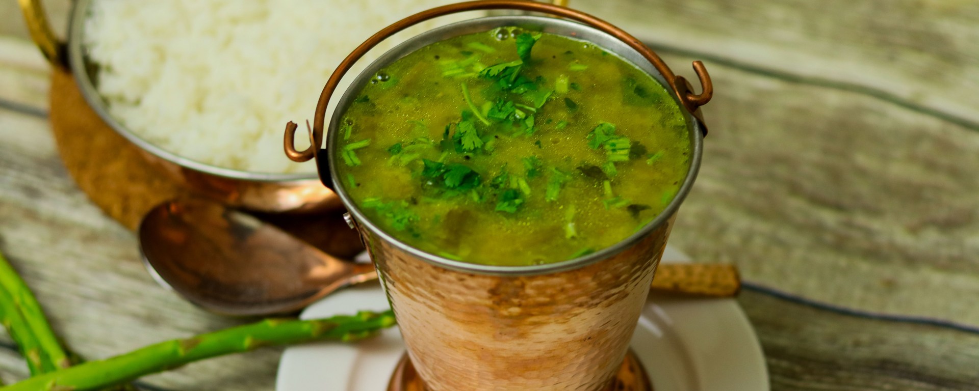 Pressure Cook the Dal and asparagus together with 2 cups water, turmeric and drop of ghee.