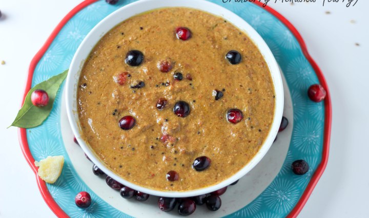 ‘Menaskai’ is a popular dish from Udupi cuisine.  It is an amazing combination of spicy, sweet and tangy flavours. This dish can be made with vegetables like Bittergourd and also with fruits like Pineapple, , raw mango, hog plum (amtekai) and … Continue reading Cranberry Menaskai (curry)